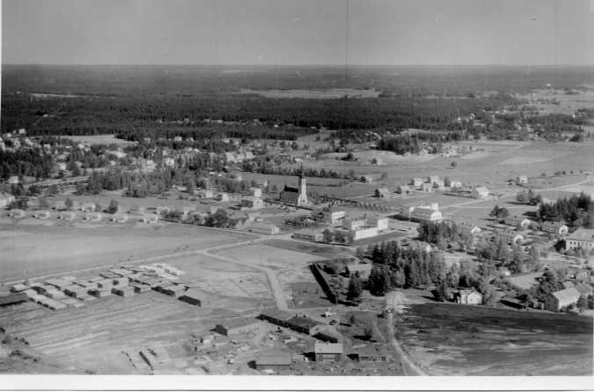 | ilmavalokuva: Sippola, Myllykoski, asuin- ja liikerakennuksia, kirkko (W |