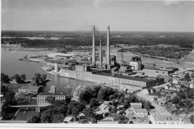 | ilmavalokuva: Valkeakoski, Yhtyneet Paperitehtaat Oy, Tervasaaren tehtaat |