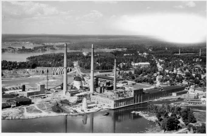 | ilmavalokuva: Valkeakoski, Yhtyneet Paperitehtaat Oy, Tervasaaren tehtaat (Valkeakoski Oy kuvan takana) |