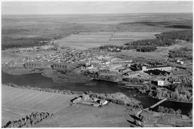 | ilmavalokuva: Paavola (yhdistettiin 1973 Revonlahden kanssa Ruukin kunnaksi), Ruukki Oy, sahalaitos Ruukissa (luettelon mukaan, ensin merkitty Raahen Puutavara Oy) |
