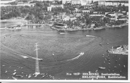| ilmavalokuva: Helsinki, Soutustadion, Suomi - Ruotsi moottorivene maaottelu |