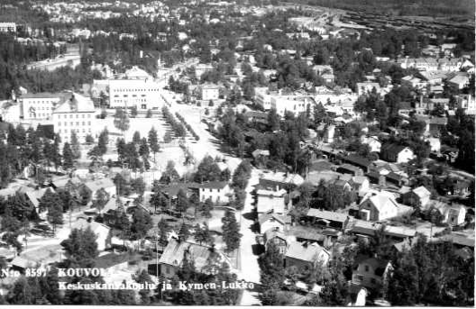 ilmavalokuva: Kouvola, keskuskansakoulu ja Kymen-Lukko