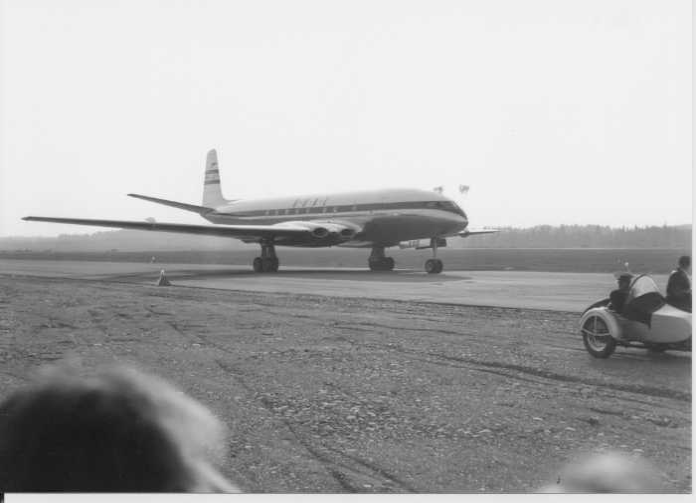 Prinssi Philip kävi Suomessa 1952 Helsingin olympialaisissa ja saapui tai lähti silloin uudella Comet suihkumatkustajakoneella Malmin kentällä. Näin itse, kun Comet lensi Helsingin yllä matalalla ja jyrinä oli valtava. Poliisien Harley Davidson näkyy olevan vahdissa.