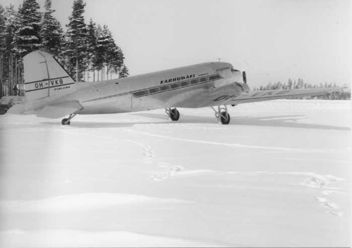 Veljekset Karhumäki hankki omistukseensa vuonna 1937 valmistetun DC-3A-214 -tyyppisen lentokoneen, rekisteritunnuksiltaan OH-VKB, tammikuussa 1954 ruotsalaiselta lentoyhtiöltä. Konetta käytettiin alunperin matkustajaliikenteessä, mutta myöhemmin siihen asennettiin tutkimuslaitteisto Geologisen Tutkimuskeskuksen lentomittauksia varten. Kone on näytteillä Suomen Ilmailumuseossa Vantaalla. Kone on yksi vanhimmista säilyneistä DC-3 -yksilöistä.