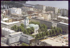 | ilmavalokuva: Hämeenlinna, keskustaa, kirkko |