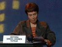 Videoleikkeellä asiantuntija Sirkka Ahonen antaa mallivastauksen vuoden 1999 ylioppilaskirjoitusten kevään kysymykseen: Ohessa on kolme tilastoa Suomen viennistä vuosien 1980 ja 1995 välillä. a) Selvitä aineiston perusteella viennin volyymissa (määrässä) ja kohdemaissa 1980 - 1995 tapahtuneita muutoksia ja viennin toimialarakenteen kehitystä 1990 - 1995. b) Arvioi huomattavimpien muutosten taustalla olevia tekijöitä.