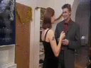 Klipissä joulupukki tulee sisään ja jakaa lahjoja aikuisille.