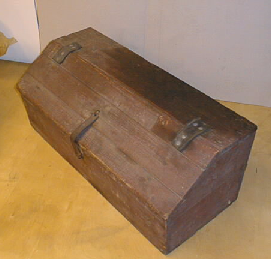 Ruskeahkoksi maalattu laatikko, sisäpuoli maalaamaton. Ponttilaudasta tehdyn laatikon kansiosa taipuu etuseinän puoleen väliin viistoksi. Päädyt on tehty kahdesta laudasta molemmat. Sivujen laudoitus on kiinnitetty naulaamalla ne päätylautojen sivuihin. Takasivu on neljästä eri laudasta, etusivu kolmesta laudasta. Päällä oleva kiinteäosa kahdesta laudasta ja itse viisto kansi kolmesta laudasta. Kansi on alapuolelta vahvistettu kahdella laudankappaleella, johon kannan laudat on naulattu. Saranoina on nahkakappaleet. Lukkona on kannessa aspi ja laatikon sivussa koukku.