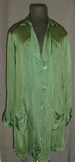 Pitkä painavan löysästi valuva neuletakki, joka kiinnittyy edestä kolmella isolla napilla ja silmuilla. Molemmilla sivuilla paikkataskut, jotka ovat kiinnittyneet napein (nyt puuttuvat). Hihansuuosat taittuvat. Koristeena neljä nappia. Kaulus takaa merimieskaulustyyppinen ja edestä herrainkaulusmainen.