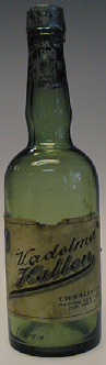Pyöreä pohja, suorat seinät, pyöreä hartia, pitkä kaula, joka pullistuu keskiosassaan. Suureuna muotoiltu saksilla. Etiketti painettu mustalla. Kaulassa hopeapaperia.