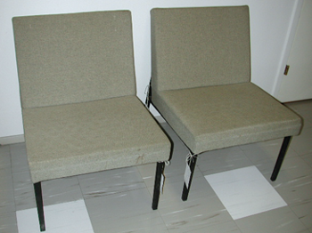 Yksinkertaisen tuolin istuin- ja selkänoja koostuu kahdesta vanerista, jotka on pehmustettu vaahtomuovilla ja päällystetty kauttaaltaan harmaalla villakankankaalla. Jalat ovat ohutta mustaa metallia. Takajalat ovat hieman viistossa ja tukevat ruuveilla istuinlevyn alaosaa. Jalkojen alla on muovipehmusteet.