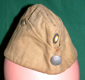 Suikkamallinen miesten kenttälakki, jonka reunat on ylöskäännetyt. Molemmilla sivuilla reunaustaa kiinittää pieni, harmaa, metallinen kantanappi, jossa on leijonasymboli. Vuori harmaata puuvillaa, jossa kokonumero 55. Edessä pyöreä keltavalkosininen kokardi ja leijona-aiheinen pyöreä metallinen kantanappi.