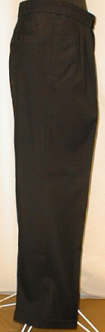 miesten mustat housut, joiden lahkeensuissa käänne, edessä vetoketju. Sivutaskut, edessä molemmin puolin kaksi laskosta, 8 vyölenkkiä vyötäröllä.