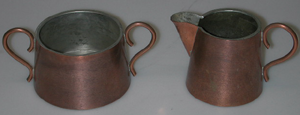 Alaspäin levenevä pyöreäpohjainen voimakkaalla nokalla ja hennolla korvalla varustettu kermakko. Sisältä tinattu ja tinalla kiinnitetty korva.