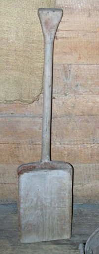 Puinen. Yhdestä puusta veistetty, jyvien (tai jauhojen?) lapioinnissa käytetty. Varsi on suora ja pyöreä; päästä levenee kädensijaksi, jossa alapuolella syvennys sormille. Pesä, varsinainen lapio-osa on lähes nelikulmainen; etusivu myös suora, sivuilla ja takana laidat /n.3-4cm korkeat), jotka mataloituvat etureunaa kohden.