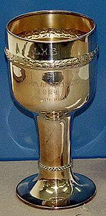 Hopeinen palkintopokaali,sisäpuoli kullattu.Muoto pikarimainen:korkea suoravartinen,alapäin levenevä jalka,maljaosa suorareunainen.Yläreunassa koristenauha,jossa lehtikuvio,jalan alareunaa kiertää pallokuvioinen koristenauha.Kyljessä tekstikaiverrukset.