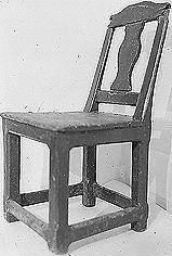 Sarja suora, alareuna hieman profiloitu; nelikulmaisten jalkojen särmiä hiukan viistetty ja niitä yhdistää kehäys; ylöskapeneva, taaksekallistuva selusta, jossa yläreunasta kömpelön kaartuva hartialauta ja pysty balusterilauta; lautaistuin