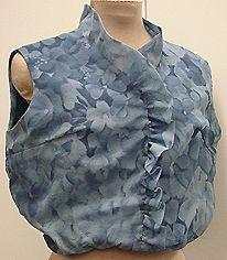 Vyötärölle ulottuva hihaton pusero. Pääntie v-mallinen, reunassa poimutelma mikä jatkuu yhtenäisenä toisella puolen vyötärölle. Pääntiellä edessä pieni halkio , siinä nepparikiinnitys. Helmassa kuminauha. Vuori ommeltu kappaleisiin, jotka yhdistetty.