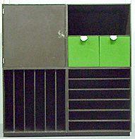 Laatikosto muodostuu erillisistä kuutioista, joita voi liittää toisiinsa haluamaansa järjestykseen. Kahdessa kuutiossa viisi avohyllyä, yksi kuutio varustettu ovella (vedin puuttuu), yhdessä kuutiossa kaksi vihreää vetolaatikkoa, jotka varustettu metallisin vetimin. Mukana kaksi matalaa sokkelia. Lisäksi muovipusseissa pieniä muovisia tappeja.