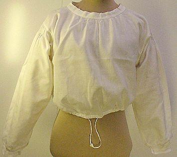 Hieman vyötärön alapuolelle ulottuva, miehustaltaan leveä, pitkähihainen pusero. Suorien hihojen suissa nepparilla suljettavat kapeahkot rannekkeet. Helmapäärmeeseen on pujotettu poimutusnauha. Laajan pääntien reunassa kapeahko suora kaksinkertainen kaitale.