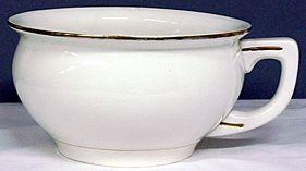 Pulleakylkinen yöastia. Alaspäin voimakkaasti kapeneva. Kädensija taitteinen.