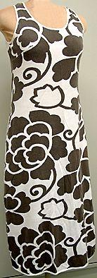 Pohjepituinen, vyötärösaumaton, loivasti vartaloa myötäilevä hihaton yöpaita. Pääntie pyöreä, avarahko. Helma toisesta sivusaumasta loivasti pyöristetty, pieni halkio. ( halkiota käsin ommeltu lyhyemmäksi ) Pääntie, kädentiet ja helma kantattu yksivärisella neuloksella.