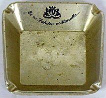 Matala tuhkakuppi. Pohja neliön muotoinen. Reunoistaan toiseen päähän kapeneva ja madaltuva. Kulmissa painaumat savukkeelle. Sisäreunassa mustalla teksti: Ei oo Lahden voittanutta...