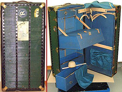 Matka-arkku: kookas, pystyssä seisova matka-arkku, joka on saranoitu kahteen puoliskoon. Ylhäällä kantokahva. Sisällä toisella puolella on lukolla varustettu vetolaatikko, jonka alapuol. on klahvin tapaan aukeava kannellinen säilytystila. Alimpana päällekäin kaksi vetolaatikkoa. Näissä lukitusmekanismi (ks. lisätieto). Sisällä toisella puolella verho, jonka takana henkaririvistö (5 kpl), poikkipuu ja alhaalla neljä kenkäpussia.