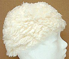 Puolipyöreä, päälipuolelta nukallinen neulospäähine, jonka reunassa kapea 2x2 resori.