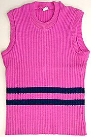 Lantiolle ulottuva suora, hihaton 4x2 neulospusero.Pääntie pyöreä, reunassa 2x2 resorineulos, samoin kädenaukoissa.