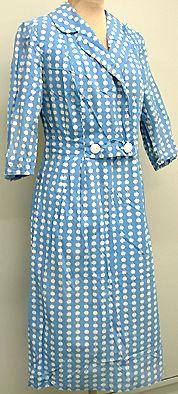 Pohjemittainen, vyötärösaumaton puku, Vartaloa loivasti myötäilevä, sivusaumassa vetoketjuhalkio. Edusta jakkua muistuttava, kahdella vierekkäisellä napilla kiinnitetty. Pyöreäkulmainen, kapeahkokäänteinen herrainkaulus.