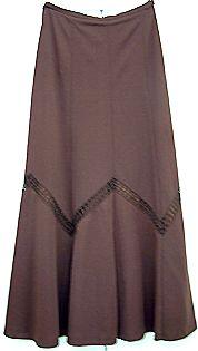 Nilkkoihin ulottuva, kahdeksasta kapplaeesta saumattu hame, joka leviää pitsikoristeeseen asti hieman ja siitä alaspäin voimakkaasti. Kapea vyötärökaitale ja vetoketjuhalkio vasemmalla. Vuoritettu ruskealla tekokuitupalttinalla.