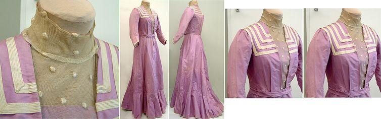 Pusero: vyötärölle ulottuva, vartalonmyötäinen yläosa. Pitkät, ranteista kapeat, pyöriöltä voimakkaasti poimutetut hihat. Pääntie vyötärölle saakka v-mallinen,avoin, alla alaosasta vuoritettu, laakapistoin pallokoristeltu tyllietumus ja muoviluilla tuettu pystykaulus. Kokonaan vuoritettu, tuettu metalliluilla, edusta kiinnitetään hakasilla. Sisäpuolella vyötärönauha, päällä kapea vyö. Hame: täyspitkä, kokonaan vuoritettu, viidestä kappaleesta ommeltu hame. Vyötäröltä vartalonmyötäinen, alaspäin levenevä, takaa pidempi. Polven alapuolelta alkava, täysvinoon leikattu helmus vuoritettu villamusliinilla, reunassa villahapsunauha. Kapea vyötärökaitale ja halkio, jossa kiinnitys hakasilla.