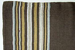 Suorakaiteen muotoinen paksuhko pellavapöytäliina, jossa palttinapohjalla on toistuvat epäsymmetriset raitaryhmät kudottu pomsina.Päissä kapeahkot koneommelpäärmeet
