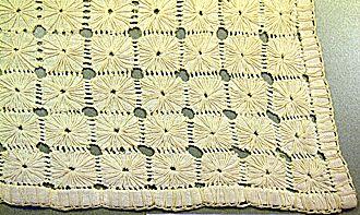 Isohko suorakaiteen muotoinen pöytäliina, jossa reunoilla päärmeet. Kankaasta purettu lankoja niin, että muodostuu ruudukko. Ruudut ommeltu keskeltä ruudun reunoille ulottuvin pistoin. Päärmeen ympärillä harva virkkaus.