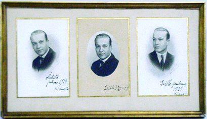 Kuva: Valokuvia 3 kpl samassa kehyksessä ja passepartout}ssa esittävät Klaus Holmaa. Rintakuvista kaksi on en face, kolmas 3/4 profiilissa. Vaaleahiuksinen mies on pukeutunut tummaan takkiin, valkeaan paitaan ja ruudulliseen kravattiin. Kuvat medaljongin muotoisia. Suorakaiteinen kuva-aukko on rajattu kultanauhalla. Passepartout luonnonvalkea, kellastunut. Kehys: Profiloitu kehyslista on varjätty kullan eri sävyillä. Massiivinen pahvitausta toistaa samoja värejä marmorointi kuvioisena. Tukilevy on leveä. Takana myös ohut metallirengas seinälleripustamista varten.