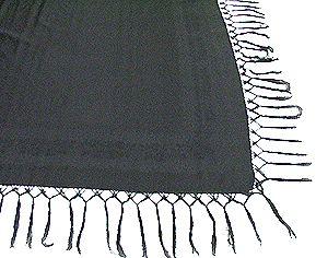 Iso neliömäinen huivi, jonka reunoja kiertää kukka-aiheinen kuvioraita. Sivuilla hulpio, päissä kapea koneommelpäärme. Pitkät solmitut hapsut.