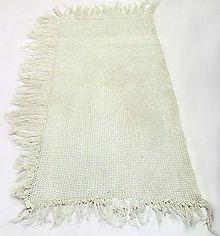 Tytön suorakulmainen,pitkänomainen hartiahuivi.Sivu- ja alareunoihin solmittu hapsut.