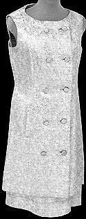 Jakku: vyötärösaumaton vartaloa myötäilevä polvipituinen hihaton jakku, jossa takahalkio. Pääntie avara venemalli, edestä avoin, kaksrivinapitus päällystetyin napein. Edessä upotetut taskut. Hame: jakun alla pidettävä lyhyt hame, jossa takakappale kokonaan kuviokangasta, etukappaleesta vain helmaosa, yläosa vuorikangasta. Vyötärökuminauha, ripustuslenkit, sivusaumassa vetoketju.