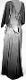 Vyötärösaumallinen nilkkapituinen puku, jossa hameosa edestä suora, takaa loivasta levenevä. Yläosa vartalonmukainen, hyvin avara pääntie, edestä pyöreä, takaa V-malli, keskitakasaumassa vetoketju. Leveät puolipitkät istutetut hihat. Helma ja hihat tummat, keskivartalo vaalea. Saumakohdassa vyömäinen kiinniommeltu kaitale.