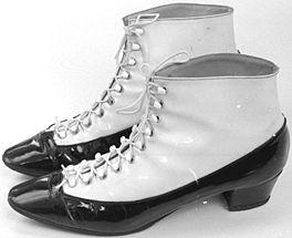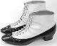 Suippokärkiset, korolliset nilkkakengät, joissa alaosa ja korko on mustaa lakeria. Yläosa säärystimen omaisesti valkoista muovia. Edessä tiheä metallihakasrivistö, ohut kengännauha, sisäläppä. Nahkavuori ja huopapohja. Pohja muovia.