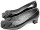 Avokas, jossa puolikorkea, lähes neliömäinen korko. Rinnuksesta melko avoin, etureunassa lähes koko kärjen peittävä kolmisakarainen rusetti.