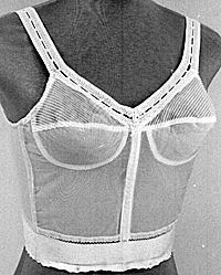 Vyötärölle ulottuvat liivit, joissa tukena luut. Kuppi-osan yläpuoli koristeltu, takaa avarat, kiinnitys vyötäröltä hakasilla.