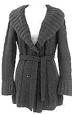 Lantiomittainen, vartalonmukainen paksuhko villatakki, jossa mohairlangasta neulottu 2x2 neulosta vyötärölle ulottuva shaalikaulus ja siinä nappi. Irrallinen solmittava vyö helmineuletta.
