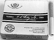 Lähes neliön muotoinen matala rasia, jonka kansi päällystetty valkoisella paperilla. Kannessa tummanvihreällä pohjalla valmistajan nimi, alhaalla vasemmalla ympyrässä KLUBI KLUBB 77. Sisältänyt alunperin 25 pillitupakkaa, 1 jäljellä.