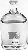 Litteä vihreä lasipullo, jossa kierrettävä, kullanvärinen korkki. Pullon kyljen alaosassa painettu kullanvärinen etiketti. Etiketin alaosa kapea, suorakaiteen muotoinen, jossa teksti: uralt lavender. Etiketin alaosaan liittyy ympyränmuotoinen osa, jossa teksti: GUSTAV LOHSE / Lohse / BERLIN.