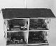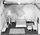 Harjakattoinen, katon toinen puoli saranoitu. Savupiippu sähköputkesta. Neljä huonetta, kaksikerroksinen. Harmaat paperitapetit. Yläkerran vasemmanpuoleinen huone makuuhuone, oikeanpuoleinen olohuone, alakerran vasemmanpuoleinen lastenhuone, oikeanpuoleinen keittiö.