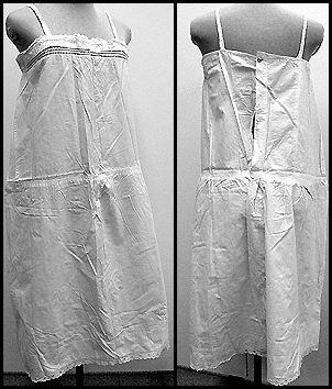 Kapeaolkaminen, malliltaan väljä alushame, jossa vyötärösauma on pudotettu ylälantiolle. Keskellä takana napitushalkio.