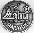 Pyöreä yksipuolinen mitali. Etusivulla kookkain kirjaimin vaakateksti: Lahti. Tekstin yläpuolella lokkeja, alapuolella kolme vierekkäin olevaa kukkaa. Lahti-sanan L-kirjaimessa kolme kaartuvaa viivaa, jotka kuvaavat Lahden kolmea hyppyrimäkeä. I-kirjaimen päällä Lahden Urheilijoiden tunnus. Alla kaareva teksti: MARATON. Kohoreuna.