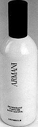 Lieriömäinen pullo. Hartiat loivat. Ylhäällä suihkepainike. Musta korkeahko lieriömäinen korkki. Korkki painetaan kiinni. Pulloon painettu pystysuoraan teksti: ARMANI. Takana tuotetietoa.
